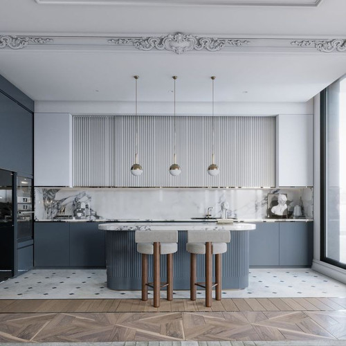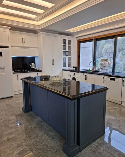 کابینت نئوکلاسیک با جزیره طرح میله ای