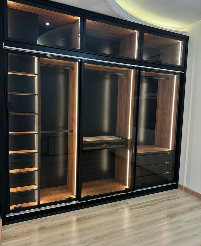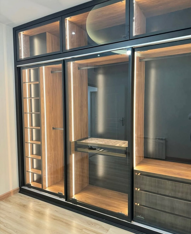 طراحی و ساخت کلوزت روم با ام دی اف و شیشه سم پلاس