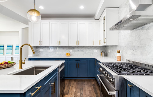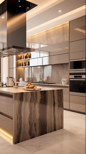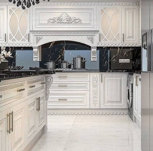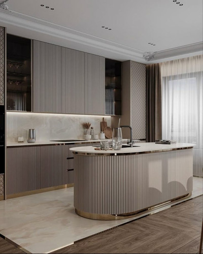 کابینت نئوکلاسیک با جزیره طرح میله ای